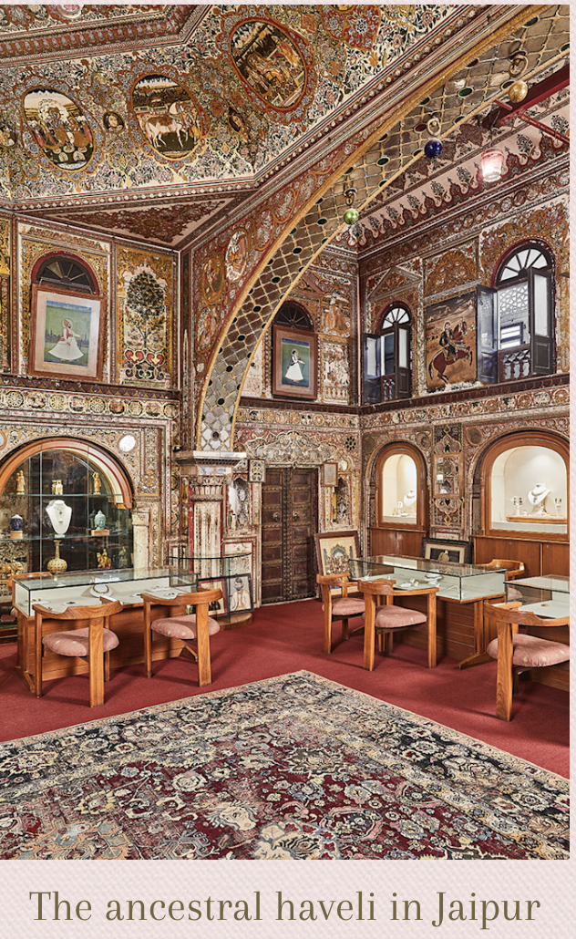 After graduating from Middlesex University in London, he completed his studies in Islamic history and Hindu arts at the School of Oriental and African studies. Completing a degree in gemology at the Geographical Institute of American, he returned to his hometown of Jaipur to train at his family’s business, Royal Gems Arts, which is located in one of the best-preserved mansions (havelis) in Jaipur. It houses a priceless collection of ancestral treasures, which shape contemporary designs.